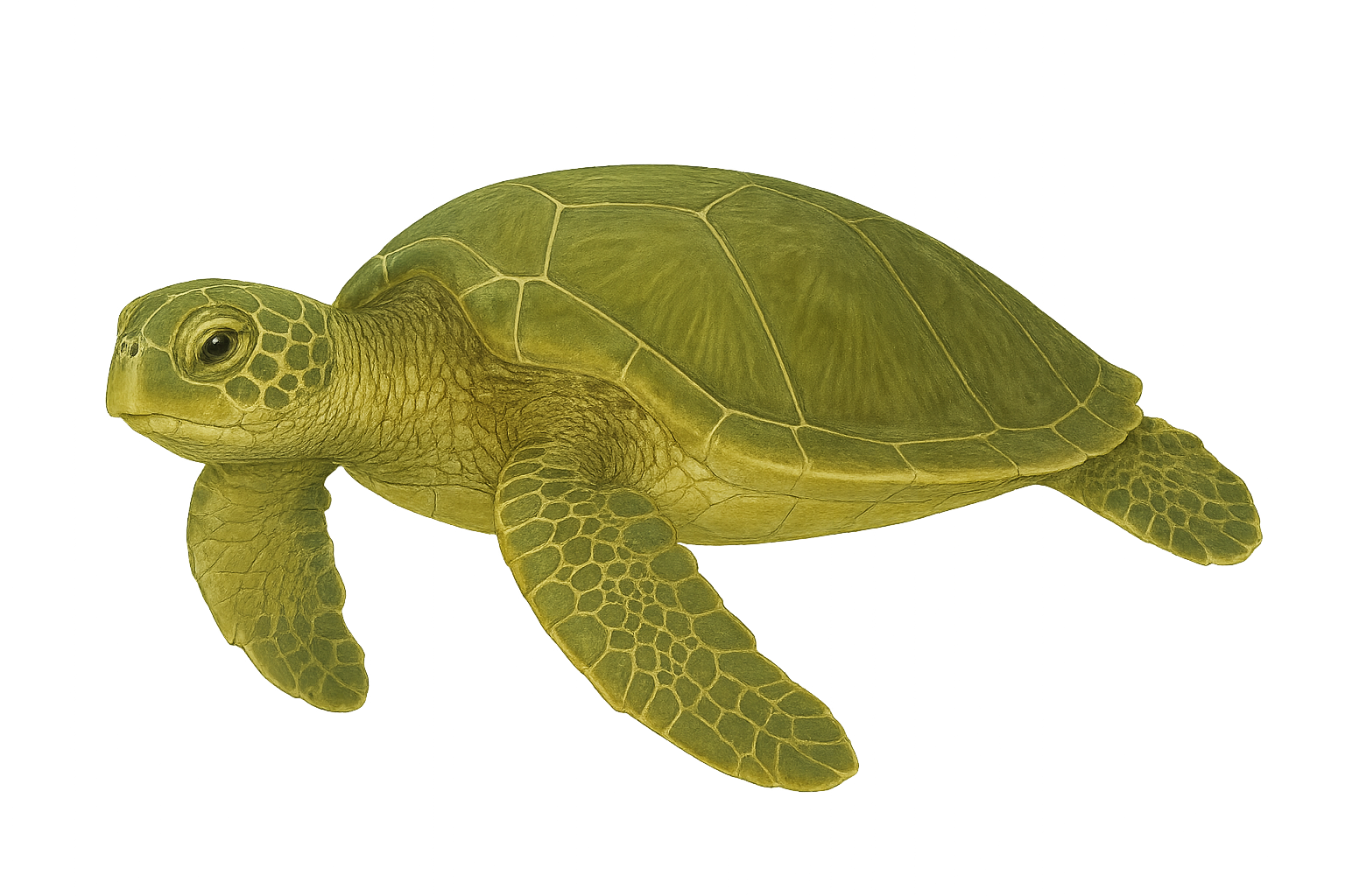 Known for its beautiful, serrated shell and narrow beak-like mouth, the hawksbill turtle plays a key role in coral reef health by feeding on sponges. Though rarer, it is occasionally sighted around rocky reefs and drop-offs.